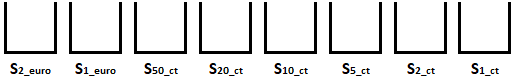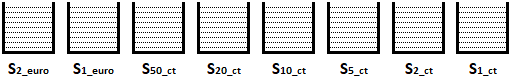 -> 1 x 2 Euro + 1 x 1 Euro + 1 x 50 ct + 1 x 20 ct + 1 x 10 ct + 1 x 5 ct + 2 x 2 ct + 1 x 1 ct