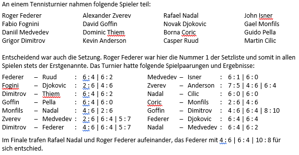 Zur Erstellung einer Baumstruktur, klicken Sie hier: Spielplan des Turniers