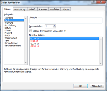 Die Optionen des Registers "Zahlen" sind weitgehend selbsterklärend