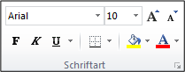 Die wichtigsten Optionen dieses und auch anderer Register der Gruppe „Schriftart“ werden auch als Standard-Formatsymbole angeboten: