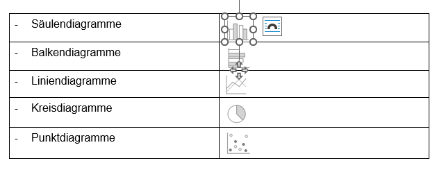 Die gebräuchlichsten Diagrammtypen sind