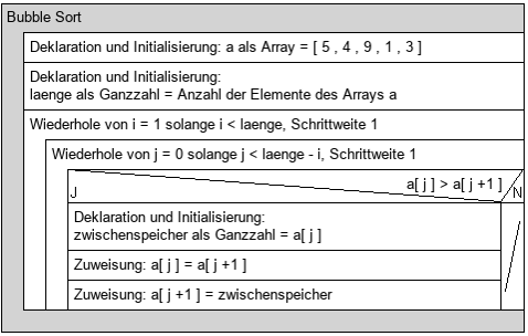 → Ende der vierten Bubble-Phase. Das Array ist sortiert.