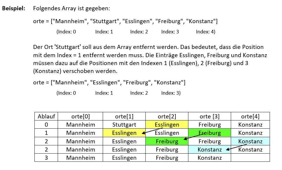 Die vorhandenen Inhalte, die nach der zu entfernenden Position stehen, müssen dann um eine Stelle „nach vorne“ verschoben werden.