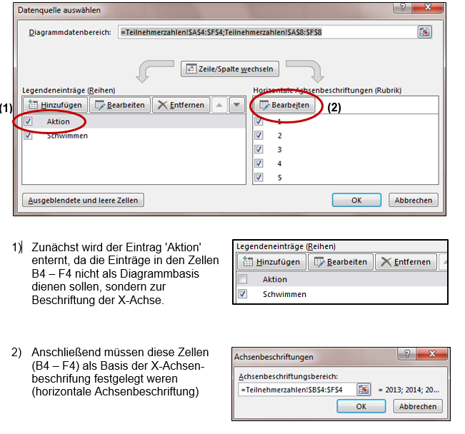 Der Befehl 'Daten auswählen' öffnet ein Dialogfenster zu Bestimmung der Datenquellen: