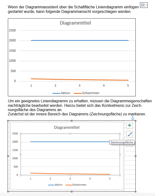Wenn der Diagrammassistent über die Schaltfläche Liniendiagramm einfügen gestartet wurde, kann folgende Diagrammansicht vorgeschlagen werden.