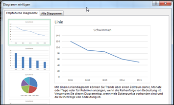 Über die Schaltfläche Empfohlene Diagramme wird ein geeignetes Liniendiagramm vorge-schlagen: