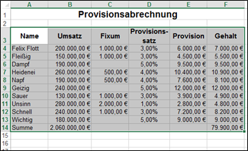 • Zu beachten ist, dass die eingefügten Zellen das Format der vorherigen Zeile übernehmen. Im abgebildeten Beispiel erhalten die neuen Zeilen das Format der 1. Zeile (Schriftgröße 14, fett).
