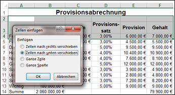Im abgebildeten Beispiel werden die vorhandenen Zellen nach unten verschoben.